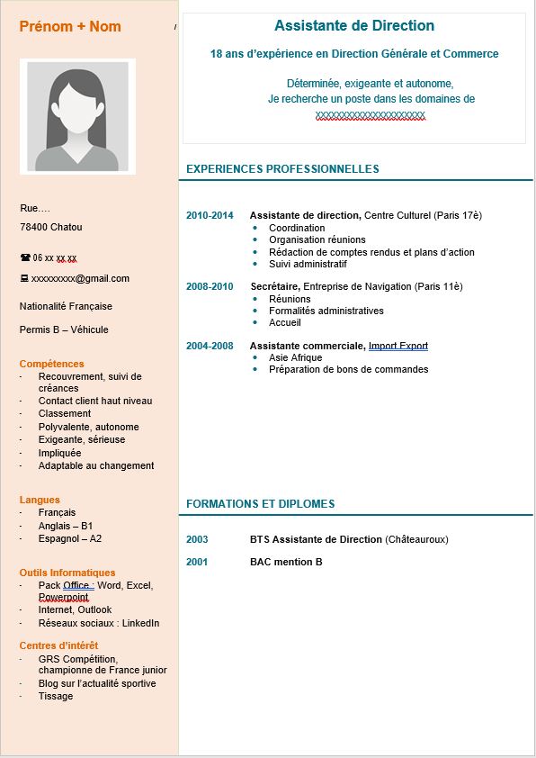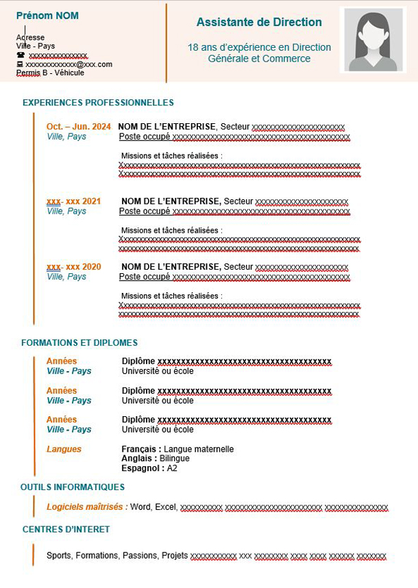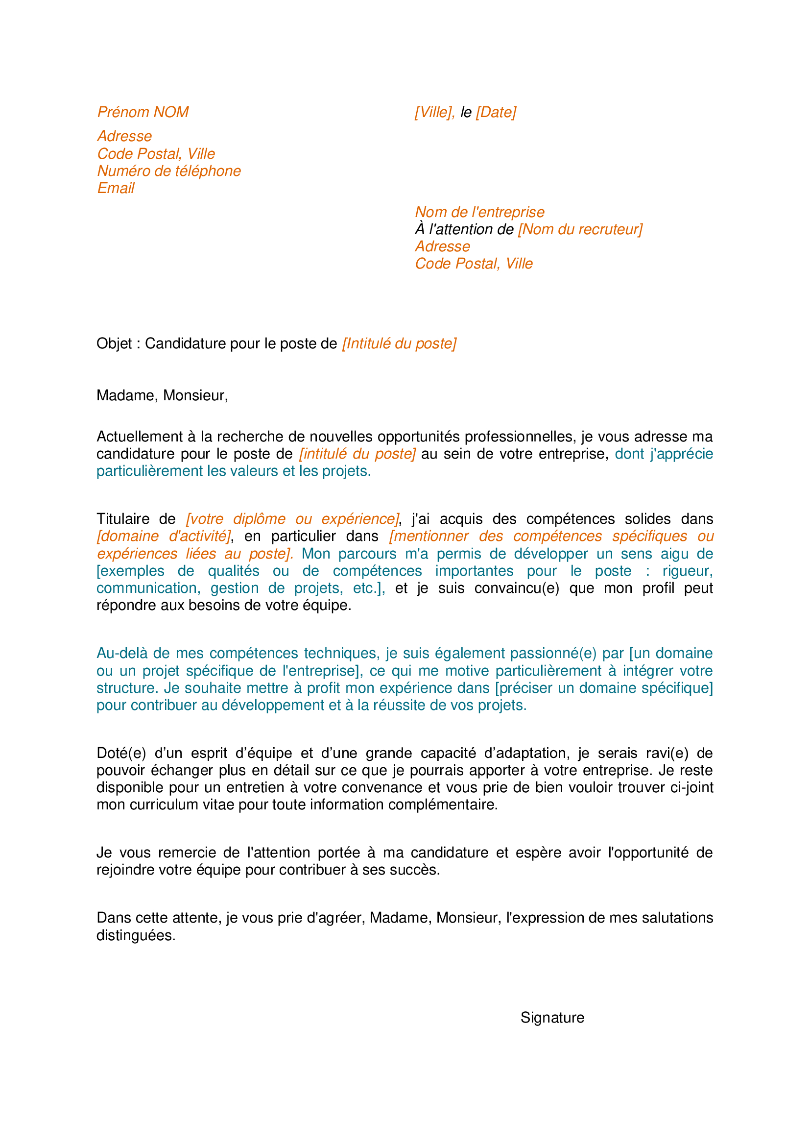 1) Dans l'exemple de LM ci-jointe, les textes en bleu sont facultatifs et les écritures en orange-italiques doivent être remplacées par vos informations personnelles. Ne pas oublier de sortir de l'option écriture en italique et vérifier que le texte final est entièrement de la même couleur.